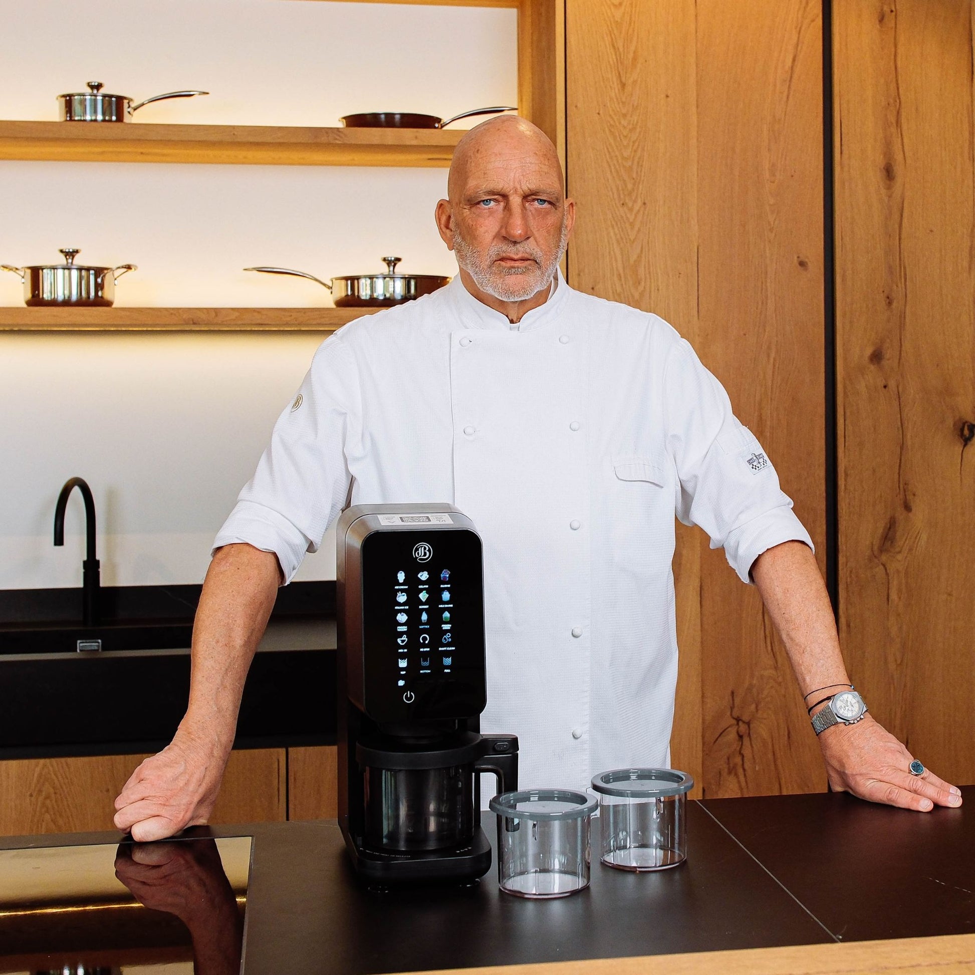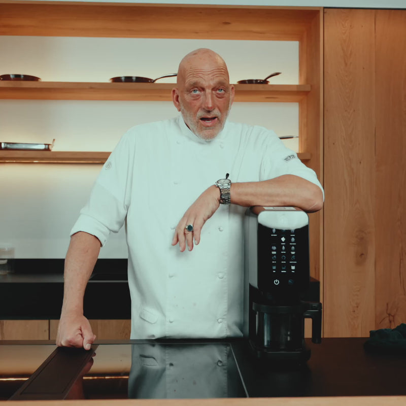 Herman gebruikt ’m zoals jij ’m gaat gebruiken: in een echte keuken. Je ziet wat ’ie doet, hoe je ’m vasthoudt en waar je op moet letten. Scheelt uitproberen. Scheelt gedoe.